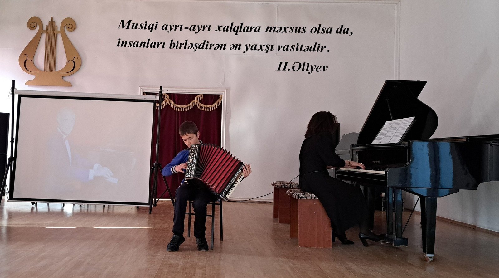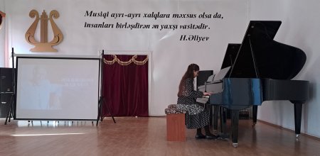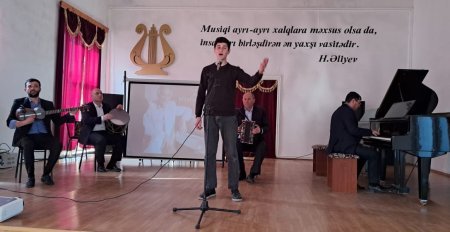 Tədbirdə məktəbin müəllim və şagirdlərin ifasında Polad Bülbüloğlunun "Şən Azərbaycan","Durnalar","Gəl ey səhər" kimi mahniları səsləndirilib.