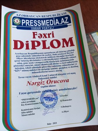 Milli Mətbuatımız 149 yaşı ilə bağlı redaksiyamızda keçirilən tədbirdə Tovuz rayonunun bir çox dövlətçiliyə xidmət edən şəxsiyətli şəxsləri Fəxri Diploma Laiq görülüblər. Milli mətbuat günündə aparılmış rəy sorğusu əsasında Tovuz rayon Çeşməli kənd icra nümayəndəsi Asif Musayev Fəxri Diploma laiq görülüb.