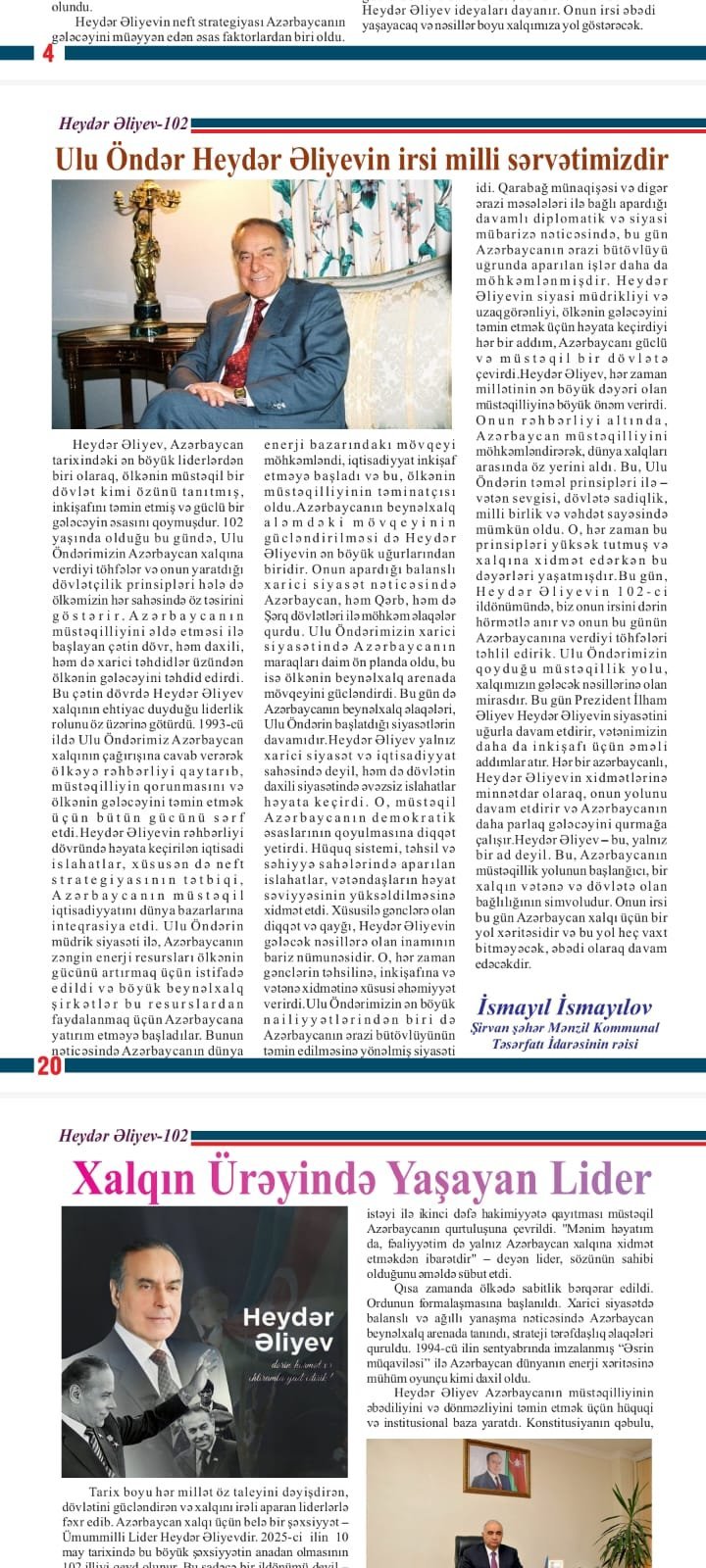 Ulu Öndər Heydər Əliyevin İrsi Milli Sərvətimizdir